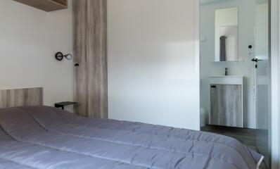 - Double bed (140x190) (duvet and pillows provided)