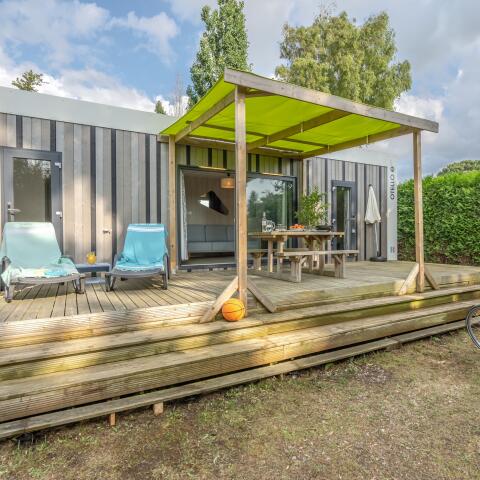 At Camping Emeraude, you can enjoy the comfort of the lodge, a 17 m² space perfect for your unusual romantic weekend in Brittany. This rental is ideal for glamping enthusiasts. While it offers great comfort, its real charm lies in its closeness to nature. This unique accommodation is available starting at €51 per night.