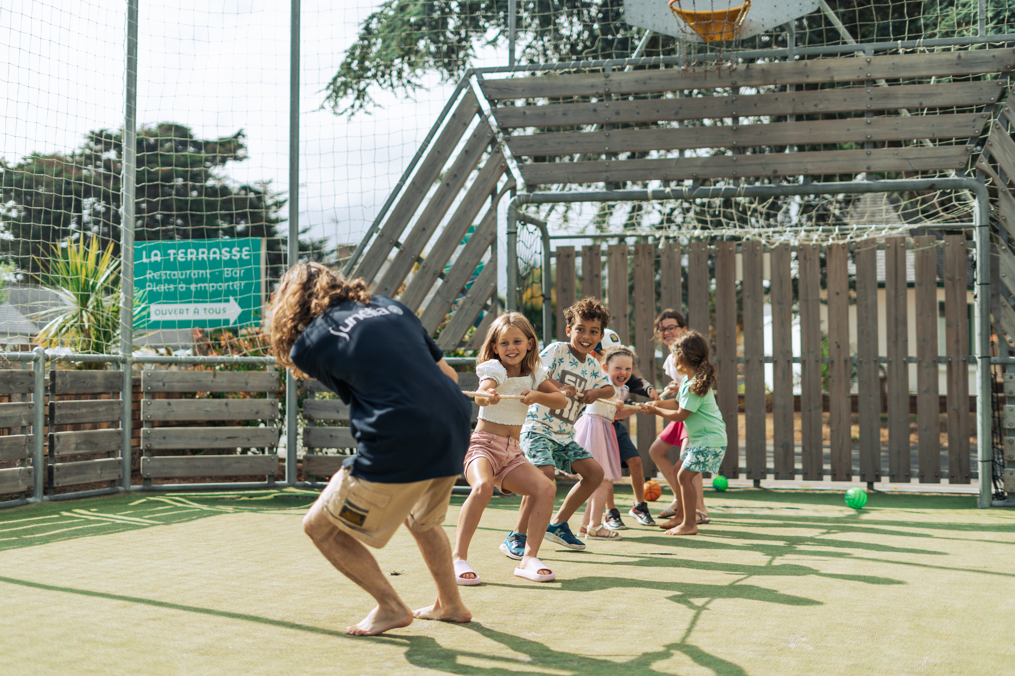 L’Émeraude, camping proche de Lancieux idéalement situé en bord de mer et doté d’infrastructures de loisirs 5 étoiles, dispose d’un beau parc aquatique doté d'une piscine couverte pensé pour faire le bonheur des vacanciers de tous les âges. Son grand bassin multi-espaces comprend une pataugeoire pour jeunes enfants avec jeu de glisse adapté, espace relaxation avec un banc à remous et jets massant, ainsi qu’une large zone de baignade et de nage. Couverte et chauffée, la piscine de notre camping près de Lancieux vous invite à profiter des joies de l’eau dès les premiers jours d’ouverture du camping et jusqu’à la fin de la saison : aucune averse ne vous fera sortir de l’eau ! A noter : Sea Green ne peut s’engager sur une température minimale d’eau de bassin.