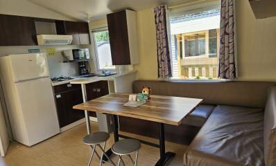 Woonkamer met eethoek. Elektrische verwarming alleen in de woonkamer.