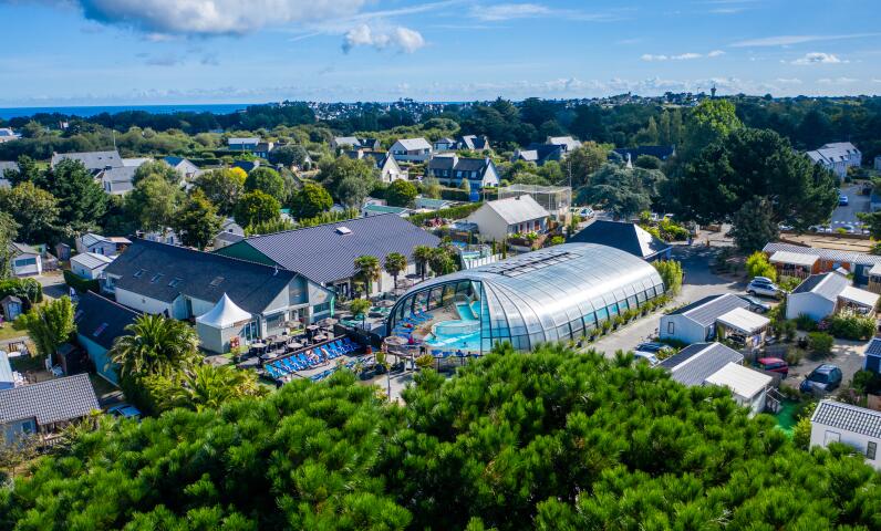 Het watergebied, naast het ontspanningsgedeelte met whirlpoolbanken en massagedouches, beschikt ook over een opvouwbaar overdekt zwembad, zodat je van het waterplezier kunt genieten, zelfs tijdens je winterverblijf in Bretagne.